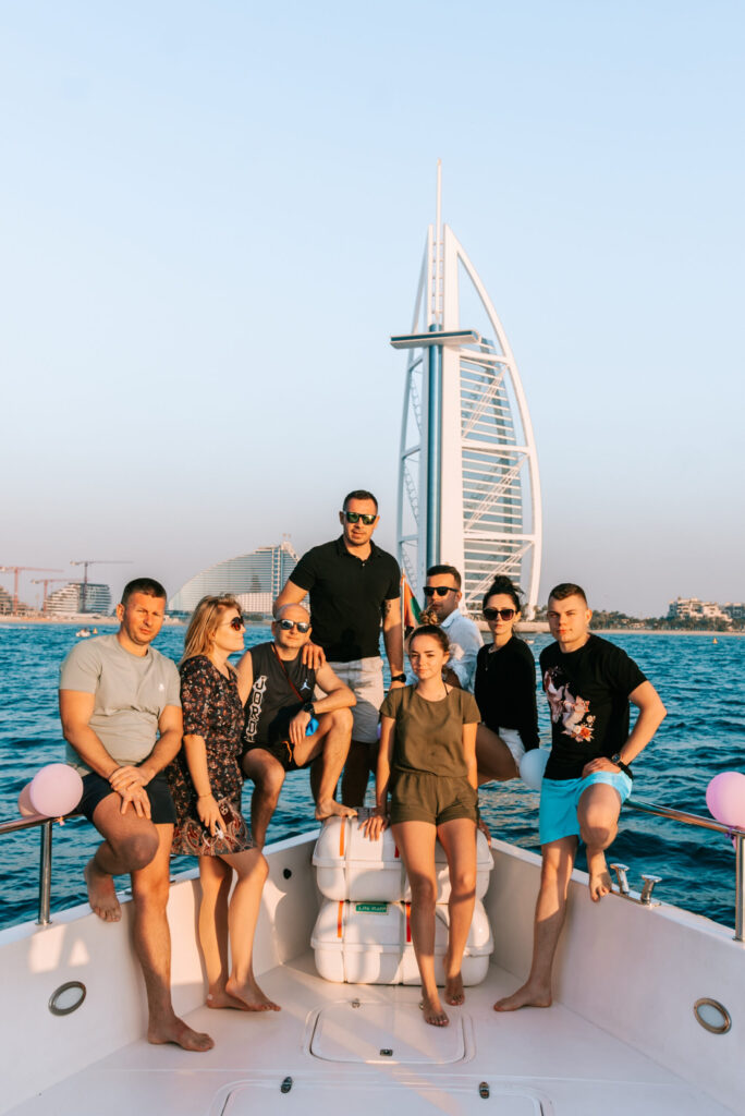 Rejs po błękitnych wodach Zatoki Perskiej umożliwia podziwianie panoramy Dubaju z zupełnie innej perspektywy! Od słynnego siedmio gwiazdkowego hotelu Burj Al Arab, przez wyspę Palm Jumeirah, aż po imponujące wieżowce Dubai Marina – widoki te zdecydowanie zapierają dech w piersiach.