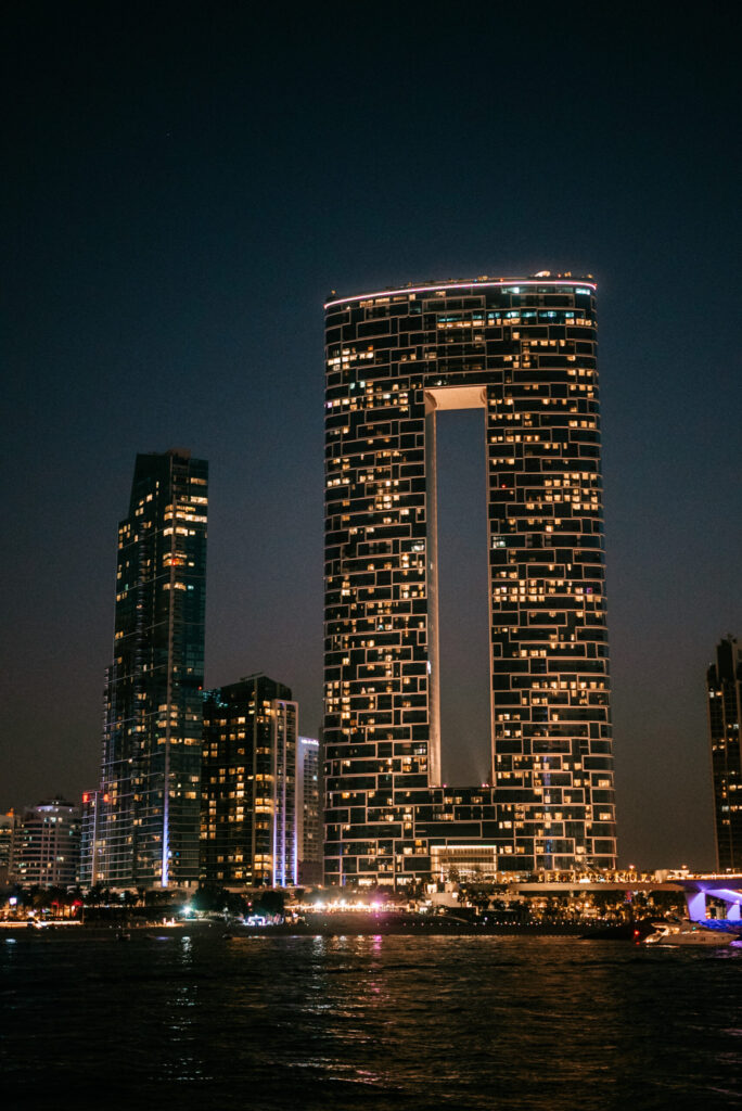 Podczas rejsu mijamy ikoniczne miejsca takie jak wyspa Palm Jumeirah – sztuczna wyspa w kształcie palmy, na której znajdują się luksusowe hotele i rezydencje. Możesz podziwiać imponujący hotel Atlantis The Palm, usytuowany na samym jej krańcu, który jest prawdziwym symbolem luksusu.