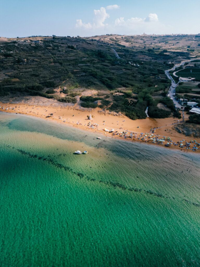 Blue Lagoon na Comino to prawdziwa perła wśród maltańskich plaż. Krystalicznie czysta turkusowa woda sprawia, że jest to jedno z najczęściej fotografowanych miejsc na Malcie. Mimo że sama plaża jest dość mała i może być tłoczno, widoki i kąpiel w tak czystej wodzie są tego warte.
