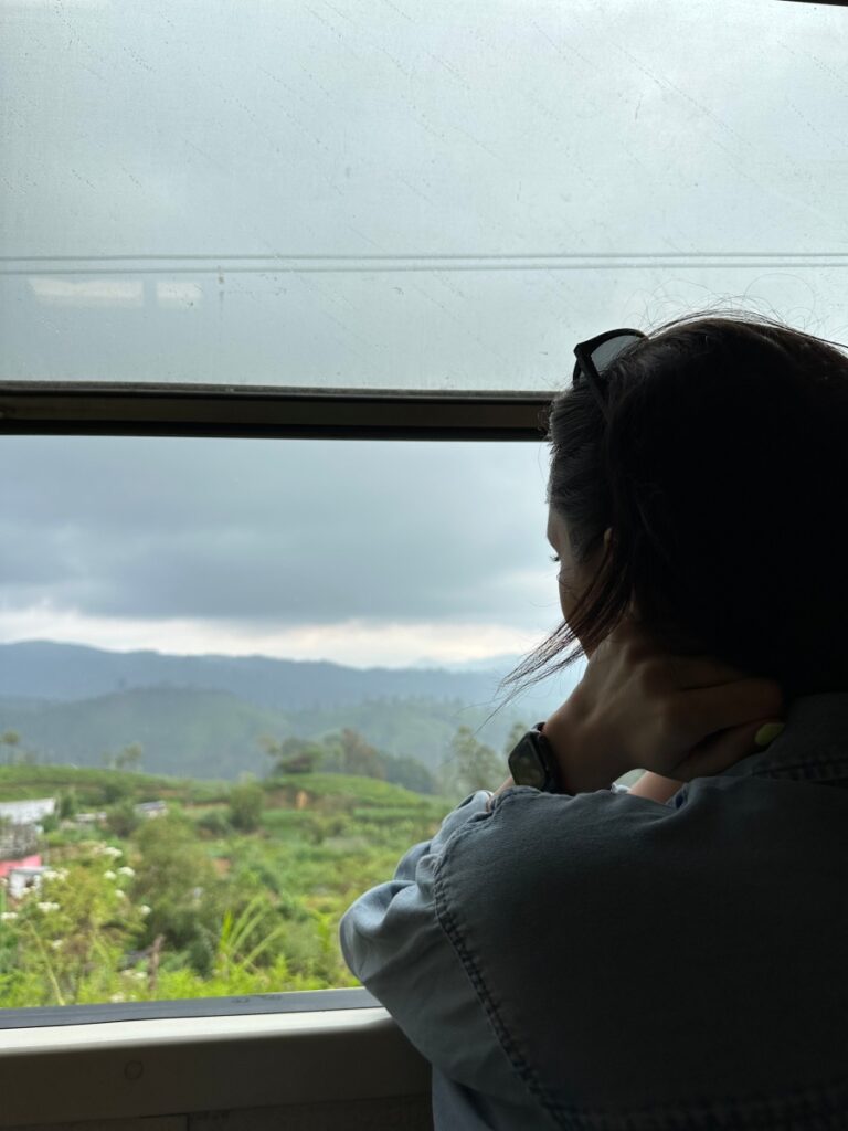 Początkowo zielone pola ryżowe i gęste lasy tropikalne dominują w krajobrazie. Pociąg powoli wspina się w górę, pokonując strome zbocza, a widoki stają się coraz bardziej spektakularne. W oddali pojawiają się pierwsze plantacje herbaty, niczym zielone dywany rozłożone na wzgórzach. Można dostrzec pracowników plantacji zbierających liście!