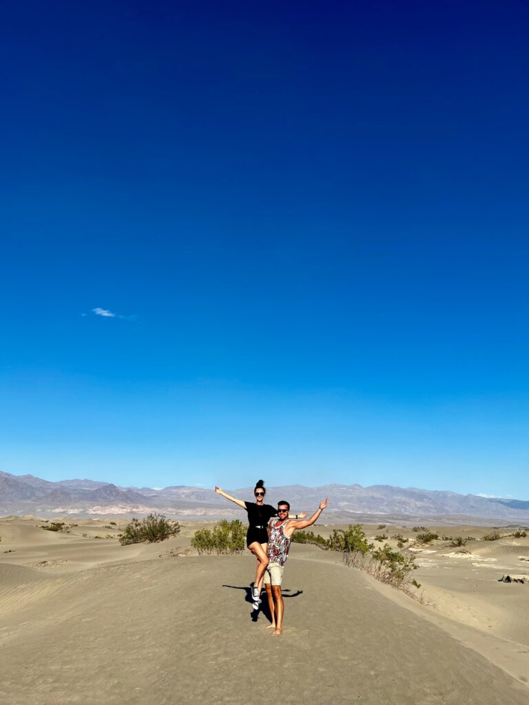 Do najpopularniejszych atrakcji Doliny Śmierci należą: punkt widokowy Zabriskie Point, słone Badwater Basin, piaszczyste wydmy Mesquite Flat Sand Dunes, krater Ubehebe i kolorowe skały Zabriskie Point. Wszystkie te miejsca zobaczyliśmy!